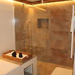 Het interieur bestaat uit een bank, evenals een TV en een flatscreen TV met satellietzenders. De badkamer is voorzien van een regendouche, een badkuip en een wastafel en biedt een haardroger en badlakens aan.